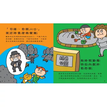 1.以輕鬆可愛的繪本形式,為孩子解說複雜的防身知識。