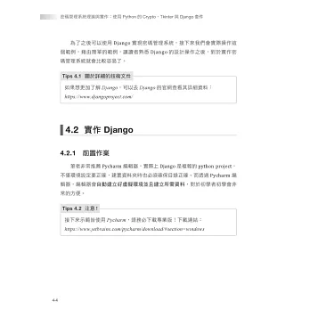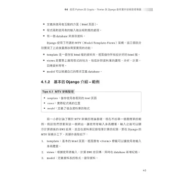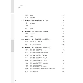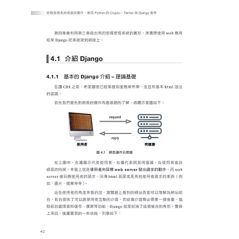 Django 是網頁應用程式的框架,MVC(Model-View-Controller)的架構。本書實作的密碼管理系統,結合了 SQLite 資料庫,將密碼管理系統架在網路上,實現 Web化。
