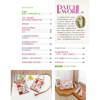 「Patchwork拼布教室」是一本專門介紹拼布教學的專業雜誌,從基礎的拼布基礎課程、傳統圖形拼接方法、基礎縫紉知識、基礎刺繡作法、拼布圖案設計、簡易布作小物等,皆以詳細又精準的圖文解說,內附原寸紙型,搭配作法,可立即上手完成個人喜愛的拼布作品,本書是新手必備的拼布指南,也是進階者們的設計靈感聖典,對於想讓拼布功力更上一層樓的手作人而言,Patchwork拼布教室絕對是值得您每一期都用心收藏的經典參考工具書。