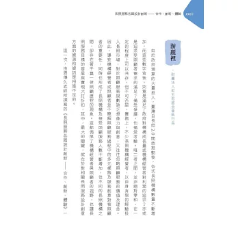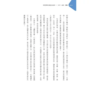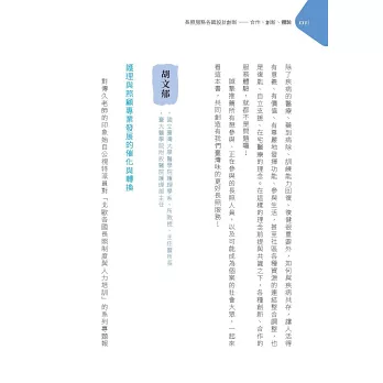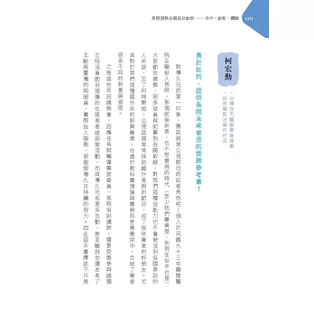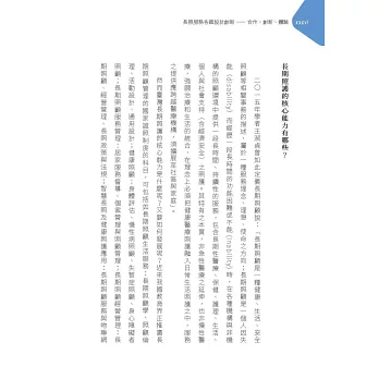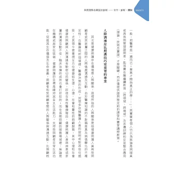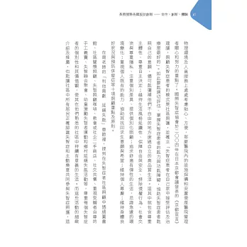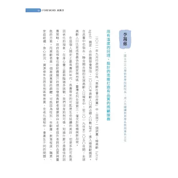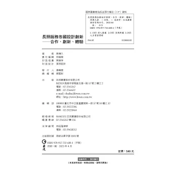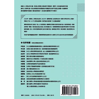 高齡人口增加的社會,失智比例隨之增加是可預期的,當然,也有越來越多的健康老人回歸社區。因此現階段的挑戰是如何讓這些民眾不至孤立無援。本書提供各國案例給臺灣參考線索,藉由創新設計,找出適合臺灣的可行模式!為2025年臺灣邁入超高齡社會提早做更好的準備,以期在勞動力不足、少子化等負面衝擊下,化危機為轉機。