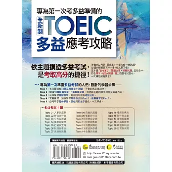 多益考試是以職場環境為背景的英語溝通考試,官方更明文公布多達13種考試取材範圍、79個情境主題。作者以此為基準,再根據多益考試出題頻率,整理出20個必考的情境主題。只要掌握這些情境,就能夠掌握多益考試要點。