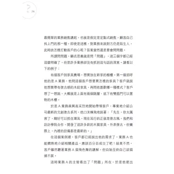 當你問話時,除非客人是很沒耐性、很不懂禮貌的人,否則基本上一定會有所回應,就請抓住這個回應,對方問什麼?我們不但接球,還要立刻丟回去。
