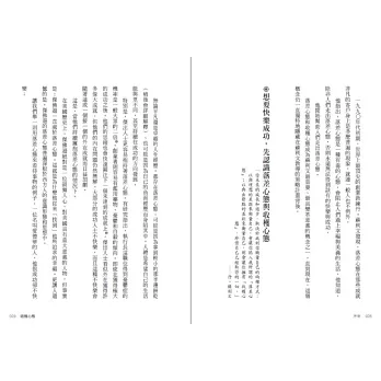 ‧顛覆傳統,追求卓越的路上享受快樂:收穫心態看似簡單卻有多層次的心理概念,讓你擁抱衡量當前與過去自己的巨大心理優勢,奮鬥同時也能感激已經取得的收穫,不再盲目追求外在的幸福和自信。