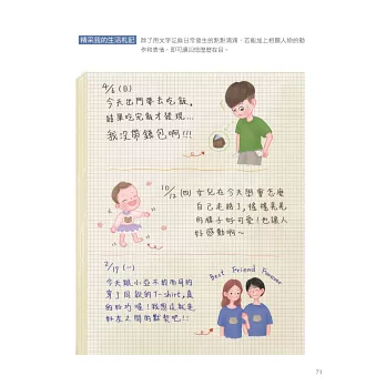 這是我人生中出版的第一本書,從構思到完稿,過程中有好多需要考慮的事情。一開始有點茫然,幸好有總編輯從旁協助整理思緒,也十分感謝不時給予意見的爸爸、姊姊們和朋友佳宜,當然,還要感謝願意提供照片的朋友,讓我可以順利完成。