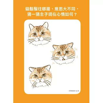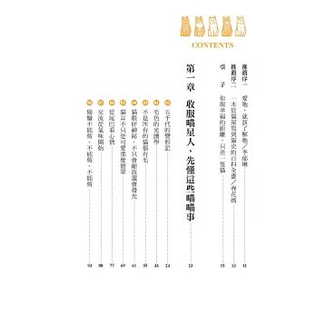 二是作者親切淺白的說明。無論是養貓的鏟屎官,或是開始被貓迷住的小粉絲們,對於作者的寫作口吻,一定會有種親切的感受,就是有點被虐,但是又想要被摸頭的那種口氣,有種互相鼓勵的親切感。