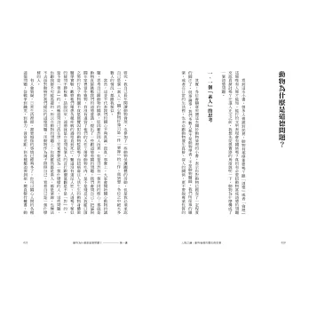 問題出在倫理學的先天成見:倫理學或者道德哲學,從來就是以「人」為主題的。道德所關注的是人;倫理學不言自明就必定是人的倫理學,前面「人的」兩個字其實是贅字。針對「人」的倫理,深刻、精采的思考和討論已經進行了幾千年,大家並不陌生,也不會懷疑它的存在有理由、有必要,同時有其價值。但是幾千年來,動物卻始終被排除在道德領域之外,人們並不認為動物可以構成倫理思辨的對象。這時候,要談動物倫理,就需要先看看人類究竟對動物持有什麼偏見,需要了解人類的道德觀為什麼容不下動物,以及在這樣的情況之下,歷史潮流又是如何突破了倫理學的偏狹視野,為動物開闢了一塊容身之地。換言之,在進入動物倫理的理論之前,需要先做一些歷史的回顧。先設法勾勒動物在人類道德意識中浮現的歷史經過,動物倫理學的革命意義才能明朗。本書的副標題為「動物倫理的歷史與哲學」,表達了這個歷史跟倫理的雙重焦點。