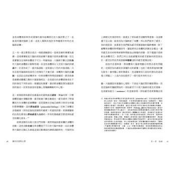 達馬吉歐的著作以實徵證據的邏輯性和質性研究的細膩度,構築出一個有用的架構來探討意識。作為達馬吉歐思想中承先啟後的一部著作,本書生動地描述腦部的各個結構與功能如何運作產生構成各種心智歷程,以及這些心智歷程又如何讓自我浮現,進而孕育不同型態的意識。對於習慣閱讀哲學脈絡下自我概念的讀者,這本書會帶給你截然不同的、靈光閃閃的體驗。此次商周出版的新譯本相當忠於原文,各項腦科學專業用語的翻譯也都很到位,審定過程中我僅建議更動少數譯名,以更貼近腦科學研究者有共識的用法和增加可讀性。