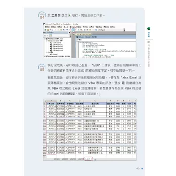批次拆分活頁簿內工作表成為各別檔案、合併資料夾中所有活頁簿…等;一再重複的繁雜工作就靠巨集、VBA來搞定,運用VBA實現自動化,工作處理更高效,一掃繁瑣煩惱!