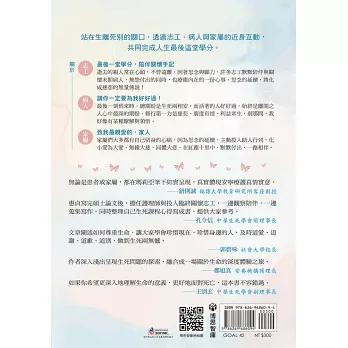 臨床上,死亡,如影隨形。面對病人的痛苦與心酸,掙扎與無奈;看見家屬的心痛與哀傷,自責與後悔;感動志工們的無畏與付出,遺憾與慈悲……。