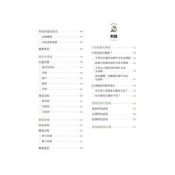 重點說明簽約前常遇到的詐騙或違約情形外,逐步帶你完成交屋、驗屋等流程,讓你初次買房就輕鬆上手!