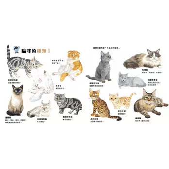 本書畫風細膩精美,內容深入淺出,是一本不分年齡,所有人都適合閱讀的貓咪介紹繪本。書中詳細介紹了貓咪的種類、貓咪的習性與貓咪各種行為背後的意義。讀者們可以搭配充滿溫度的手繪風圖片,一起來認識可愛的貓咪,是愛貓族的必備繪本!