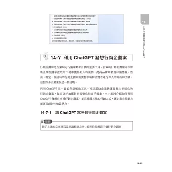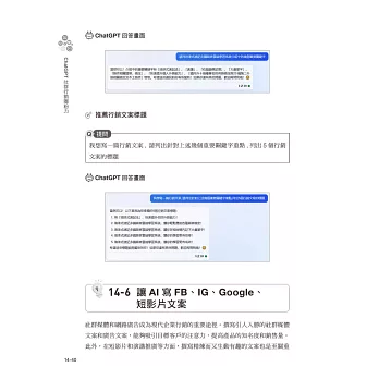 為讓讀者吸收最新的社群行銷實務及最新知識,本書特別針對熱門社群行銷議題進行探討。並且加入 ChatGPT 聊天機器人和行銷的應用結合,學習如何善用 ChatGPT 來幫你寫出 FB、IG、Google、短影片文案。