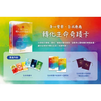 使用奇蹟卡的過程中會為你解開迷惑、指點迷津、更會帶你學習與實踐身心覺察的智慧,從身體印記走入內在心靈,解開命運模式的組織結構,改變固有僵化的人生,重啟轉化生命的蛻變之力。
