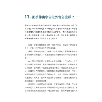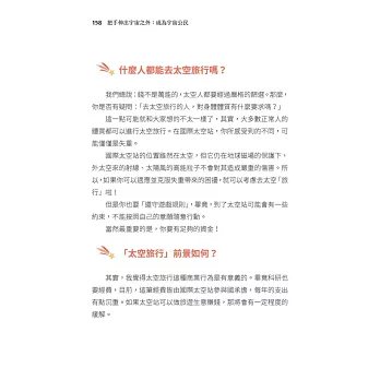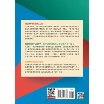 秉持著盡棉薄之力普及太空科學知識的初衷,過去近兩年的時間,我在網路上發表了六十餘篇短文。這些文章先經我口述後,由張宏宇先生整理成篇。宏宇好馬快刀,難得一見的年輕人!這些短文和我以往所寫的有些不同。網路上的文章可和讀者互動,每篇短文經常是繞著他們的提問展開,包括宇宙觀測、量子糾纏通訊、光和時間的本質、愛因斯坦的相對論、地球溫室效應、生命科學演進、火星探測,以及我自身經歷過的諸多科學突破事件等等。每篇文章我也不像以前寫書一樣,糾結於背後科學理論的清晰完整,只以解惑的大格局為主、淺顯為目的,講大道理部分,點到為止。這些文章發表後,有些讀者建議將這些短小精悍的文章集結成冊,以便閒暇時能隨手翻閱,進一步連貫各篇的重點義趣。這本書,各篇文章出現的順序並不重要,只要能沉下心來仔細體會,自會有巨大收穫。