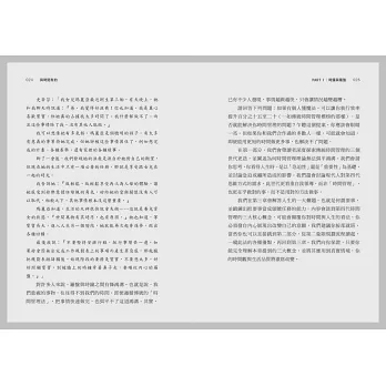 傳統的時間管理建議,你要做的是提升執行效率,進而才能支配自己的人生,獲得內心的寧靜與成就感。本書的內容顛覆時間管理的概念,將重點放在以普世準則為核心的生活態度,而不是給你更多的傳統處方箋,要求你做得更快、更努力、更聰明。因為比起把事情迅速做完,你選擇做什麼,以及為何你選擇這樣做,其實更重要。