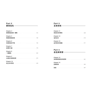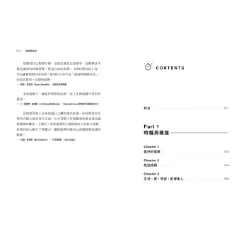 你可以將閱讀此書看成是一段內省的過程;你可以頻繁闔上書本,傾聽來自內心的聲音。在經歷深度自我認知的過程後,一定會有所改變——你看待世界的方式、看待人際關係的方式、看待時間的方式,甚至看待自己的方式,都會改變。我們堅信本書可以賦權於人,並弭平你內心的落差,從此你的時間將會運用在重要的事物上。