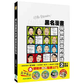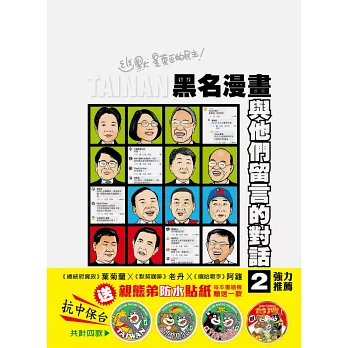 精準描繪近年各大時事、台灣統獨問題、轉型正義議題,幽默且犀利評論事件核心,笑看藍白黃政治人物的荒謬劇場。最具深度與笑料的漫畫圖像,皆收入在《黑名漫畫:與他們留言的對話2》之中。