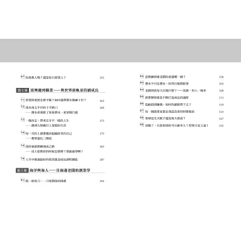★完整、有系統地介紹:從潛水活動、裝備與基本原理、國際證照,到開放水域、進階、救援潛水,以及潛水長、潛水教練,還有打工度假/換宿/換證、選擇潛水中心,以及成為專業潛水教練、如何通過潛水教練考試、透過潛水與世界接軌(工作)、海洋與海人等面向