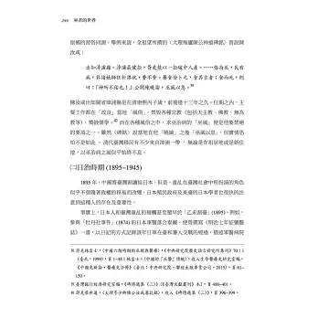 是的,富士研究歷史,正是以上古絕地天通,巫者溝通人神自況。他致力於穿越古今、進出知識異域、梳理紛紜眾說,再以流暢的文筆傳達轉譯。瀏覽本書,不論是宗教史、中國史或臺灣文化的專家學者,相信都能因其中豐富的資料、寬宏的論述而受益。初入門者,即使僅僅閱讀他的長篇自序,也能受到啟發。〈序:吾將上下而求索〉彷彿一篇學術自傳,始於「摸索」,終於「未央」,循循善誘,引領年輕學子一窺士林堂奧。
