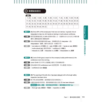 光是看懂考點還不夠!本書提供240題的多益模擬試題帶你進一步實戰。不會只讓你背正確解答和選項翻譯,因為每一題都附有詳細解析和補充單字!本書最後並整理了重點單字和片語,進考場前快速複習也OK!