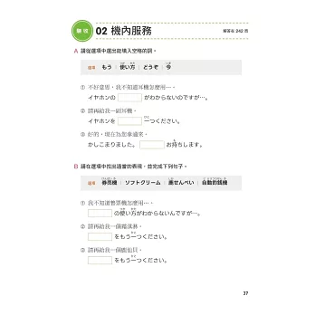 內容涵蓋了旅遊的各種情境,句型也是簡單易懂,只要替換框框內的字,就能說出正確的日文句子,非常實用。