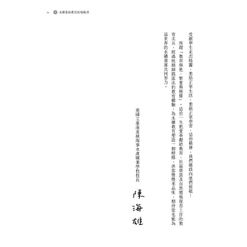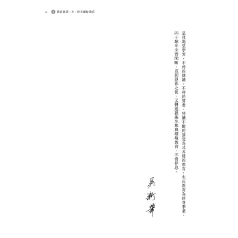 閱讀本書,如同再次經驗台灣教育改革的浪潮,作者將理想詳細規劃,在教育的理想與實務間不斷互相驗證,期盼藉著本書的分享,與大家共勉教育的力量。