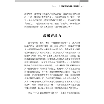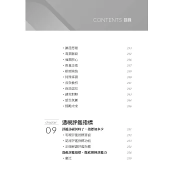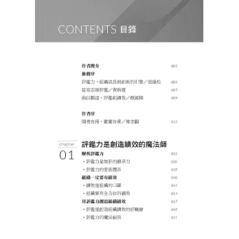 本書用「3個觀點」、「8大魔法」及「16進階」,為你打造穿金戴銀的「評鑑力」。