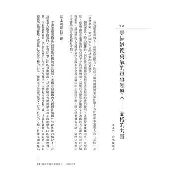 ■ 艾斯培將這本書獻給美國國防部的所有同仁,我也強力推薦吾輩軍人仔細研讀,尤其是年輕的一代,經由本書的啓發,有朝一日成為國家軍事領導人時,如何展現正直的品格及道德勇氣。——李喜明,中華民國前參謀總長