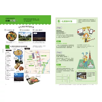 ◆書前別冊詳附北海道全圖及31幅分區地圖、札幌市內交通路線圖、函館市內交通路線圖、新千歲機場介紹,以及知名美食指南和文化導覽,方便隨身查索參考。
