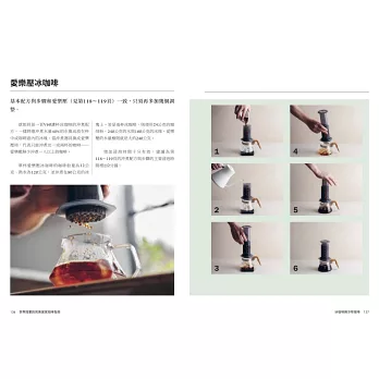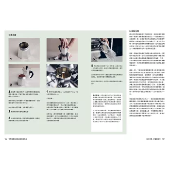 ˙搭配所有主要咖啡器材教學,介紹各種基本沖煮法(法式濾壓、愛樂壓、摩卡壺等等)。