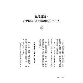 在本書中,他透過自己和許多平凡小人物的故事告訴你,不必羨慕別人的好運或福氣,因為生命的改變操之在己,始終源於心念。只要將內心隱微的善念付諸行動,持續做內心覺得應該做的事,一直做、一直做,我們終將迎來轉運造命的福報。