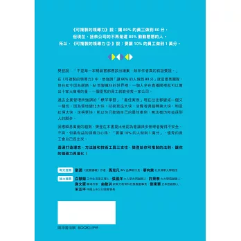 》》》透過打造理念、方法論和技術工具三支柱,樊登給你可複製的法則,讓你的領導力再進化!