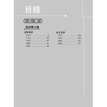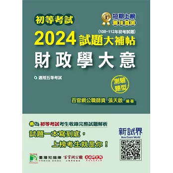 本書收錄初等考試【財政學大意】108~112年共五年的測驗試題詳解,幫助您一次準備全面應戰、熟悉題型順利上榜。