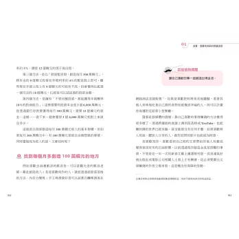 作者自身的四個被動收入投資來源,不一定可以每一項都拷貝成功,但就像我提到關於經營「個人品牌」的部分,關鍵就在於持之以恆地寫出粉絲或讀者想看且對大家有幫助的內容,其他幾項投資方式也是有不同的關鍵心法,未必能完全照搬,但一定可以模仿到成功獲利的精髓。