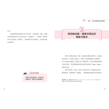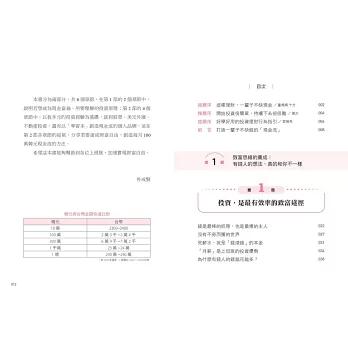 此書還有一大優勢,在於不用高深的專有名詞或複雜的操作分析,可以讓想學投資理財卻又不知如何著手的新手們,獲得簡單易懂、好學好用的指引。值得推薦!