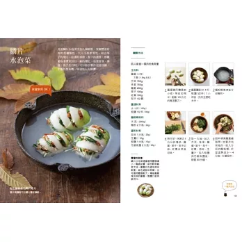 不僅有常見的蔬菜泡菜,還有水果泡菜,如蘋果泡菜、覆盆子水泡菜等;還有韓國特有的水泡菜,如西瓜蘿蔔水泡菜、大頭菜石榴水泡菜、紫薯水泡菜等;更有將食材多元組合而成的泡菜,如牡蠣白菜泡菜、人蔘白菜泡菜、娃娃菜蘿蔔捲水泡菜等,都將帶給讀者視覺與味覺的雙重享受。