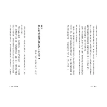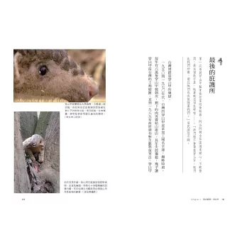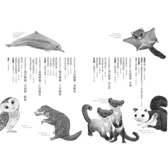 打開新書,字裡行間又讓我想起了電視裡的畫面:全球首次記錄雄性大赤鼯鼠跟母親一起照顧新生幼仔、母系社會的白面鼯鼠、集體擱淺的瓜頭鯨……也看到了一個製作人幕後的思考,為了拍好畫面一次又一次的等待,還有每一種動物小名由來的小插曲。一則又一則,字字句句都是心儀跟這些動物精靈間獨特的故事。