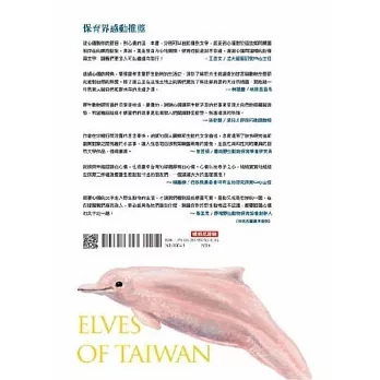 精靈,Elves,存在我們身邊,我們卻看不到,《台灣的精靈》就是我們知道某些物種存在,但是目擊的機率少之又少。例如,被稱為「幻獸」的草鴞、被封為「神獸」的穿山甲、只剩不到五十隻的白海豚;以及隱藏夜色的鼯鼠,奔馳台灣屋脊的黃喉貂,這些稀少難見的動物,不正是台灣的精靈,Elves of Taiwan嗎?
