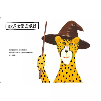 ◆ 繪者使用色彩變化表現出動物們的心情,原本的動物身上的顏色是灰暗色調,透過歐吉使用魔法之後,動物的顏色都變成繽紛色彩,情緒也跟著愉快起來。