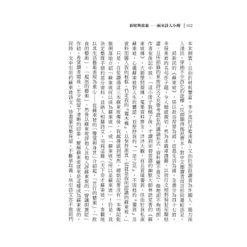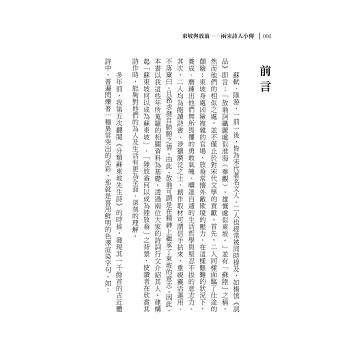 本書分為「天下奇才蘇東坡」及「愛國詩人陸放翁」兩部分,希望透過多年來所蒐集的東坡、放翁相關資料,從他們的作品出發,輔以介紹,使讀者在欣賞其詩作時,能夠對這兩位大家有更為全面、深刻的體悟。
