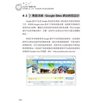 為了讓讀者能接觸較實務的網路行銷工具,書中也安排了「專題演練」單元,例如手遊行銷的SWOT分析、網路行銷的量化指標、店家LINE官方帳號行銷、Google Sites網站設計、Instagram視覺化行銷、直播帶貨、實戰大數據與Power BI、製作觸及率翻倍的短影片、Google我的商家、Google Analytics數據分析。重點特色如下: