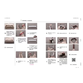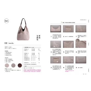 提把除了車縫固定在包上,也可以用綁的方式;不只這樣,這款包還內藏可愛的微笑曲線裡口袋,以及另一個不同作法的裡拉鍊口袋,鬆軟的隨性大包也有滿滿的技巧。