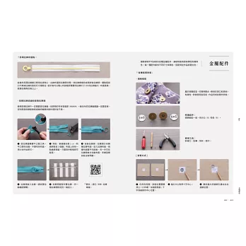 這款包開始在袋口加上拉鍊,拉鍊在袋口外該如何車縫是一大重點。包款看似簡單,卻能學到各種應用:果凍布的車法,以及雞眼釦搭配日口環、問號鈎等金屬配件的使用,是縫製可卸式斜揹帶一定要學會的。