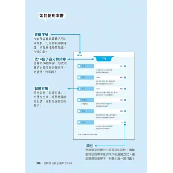 本書依照韓語14個子音,將1500個單字分類排序,學習最清楚、最好查詢,輕鬆就上手。