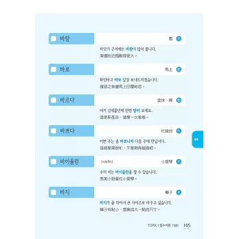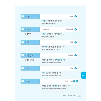 本書裡的每個例句,均是作者群專為初級韓語學習者所撰寫,最符合TOPIK I出題面向、最適合初級考生程度,每個例句也都附上中譯,實用例句一把抓。