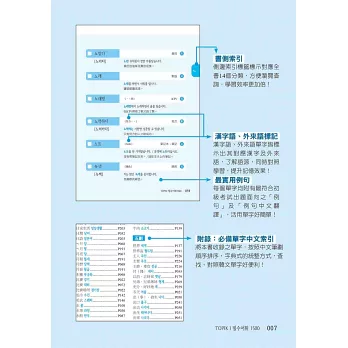 本書收錄之漢字語、外來語單字,均標示出其對應漢字及外來語,了解語源,同時對照學習,提升記憶效果。