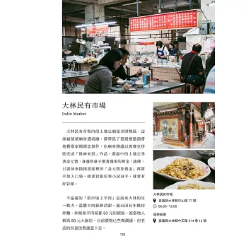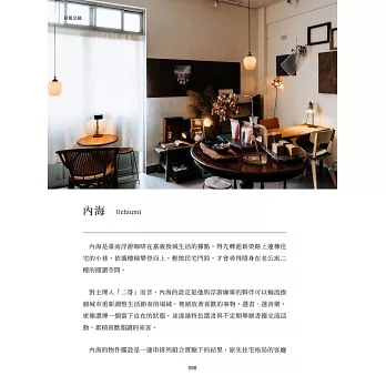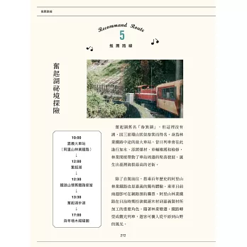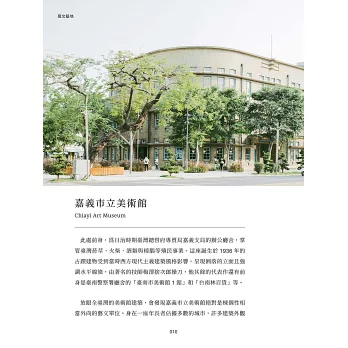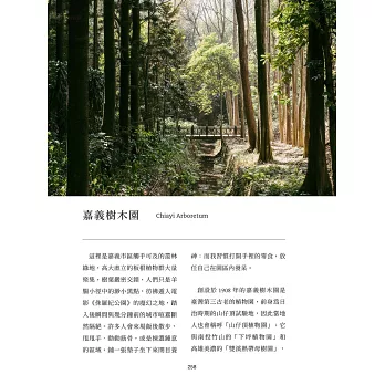 書中蒐集了自然野趣、古蹟老屋、風格選物店等,有阿里山的群木壯闊、沿岸地帶的波光粼粼,也有住在街廓裡的市井小民。從臺日混血的祕密酒吧,到電影拍攝地的東石壽島,每一幕都是迷人的裏嘉義。