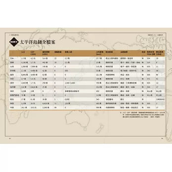 以文為主,以圖為輔,由淺入深,順暢進入地緣政治學核心,從地緣特色、地理環境、歷史解析、各國主觀視角、名家精闢解析,深入了解太平洋島鏈的天然環境、戰略、軍事、經濟、文化、產業鏈、衝突點,為讀者建構視角最實用、最具現實感的地緣政治大局觀!