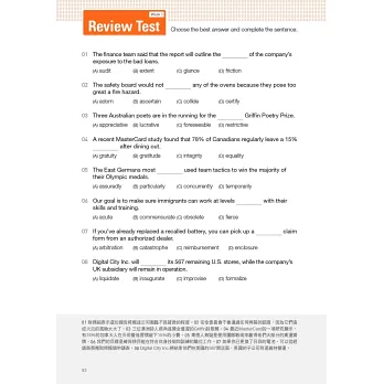 本書收錄之必考單字均詳細羅列音標,附錄英美母語人士發音音檔,音檔包括例句、片語等等,輔以文字,不僅能提升聽力,也能強化閱讀能力,讓你迅速準確地判斷出正確答案。