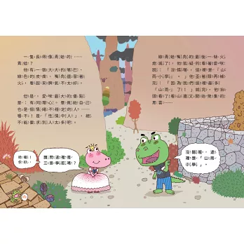 A:古怪國的學校,當然要特別的學生才收啊!可以是特別愛哭的、特別愛生氣的、特別會噴火的、特別會游泳的、特別會讀書的⋯⋯連特別乖的小珍珠都是山雨小學的學生喔!這樣看來,有誰是不特別的呢?